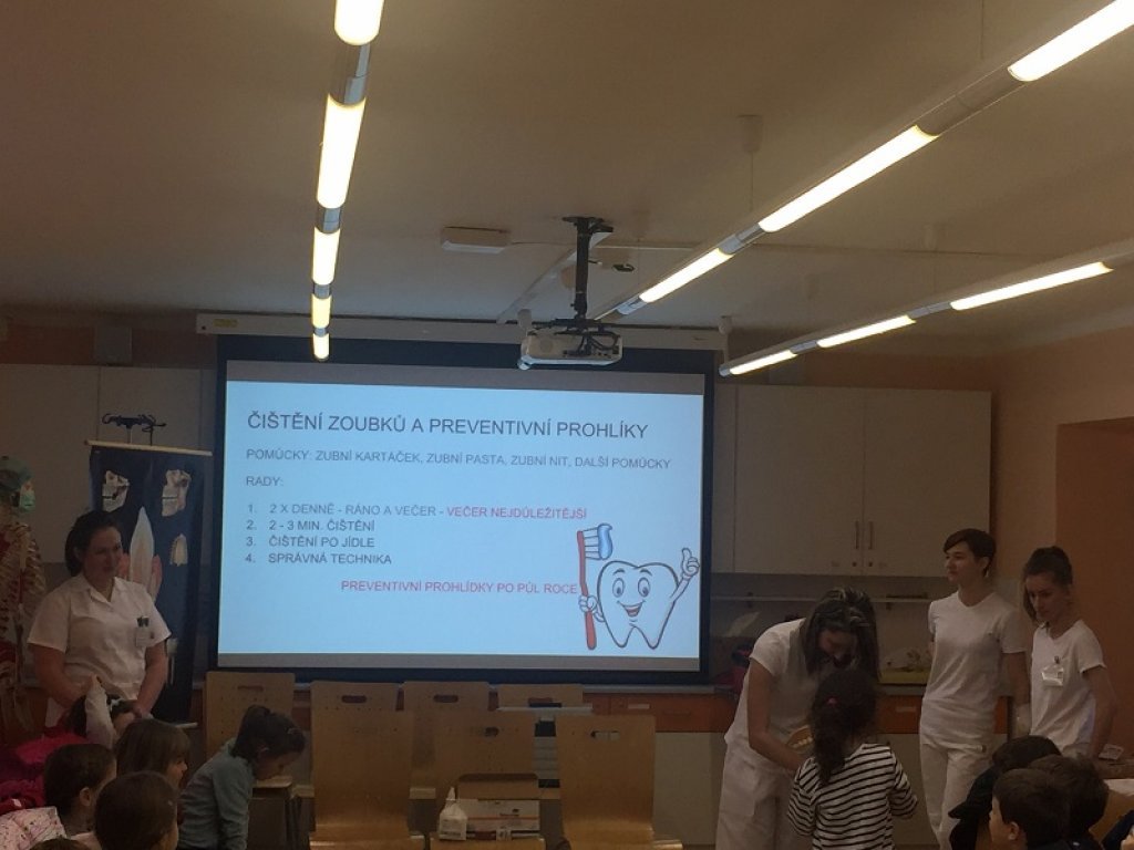 Studenti 3. ročníku oboru Všeobecná sestra si v rámci předmětu Základní edukační činnosti připravili preventivní program s názvem „Zdravý zoubek a Malý záchranář“. Připraven byl tak, aby si děti z univerzitní mateřské školy Škatulka a školáci z 1. třídy ZŠ Lesní odnesli důležité informace a zároveň měli možnost si jednotlivé úkony vyzkoušet. Procvičili si na modelu chrupu správnou techniku čištění zubů a zásady prevence zubního kazu.