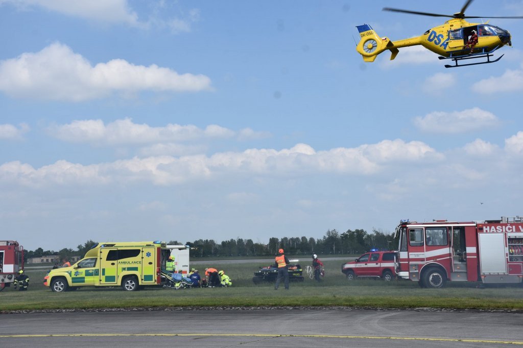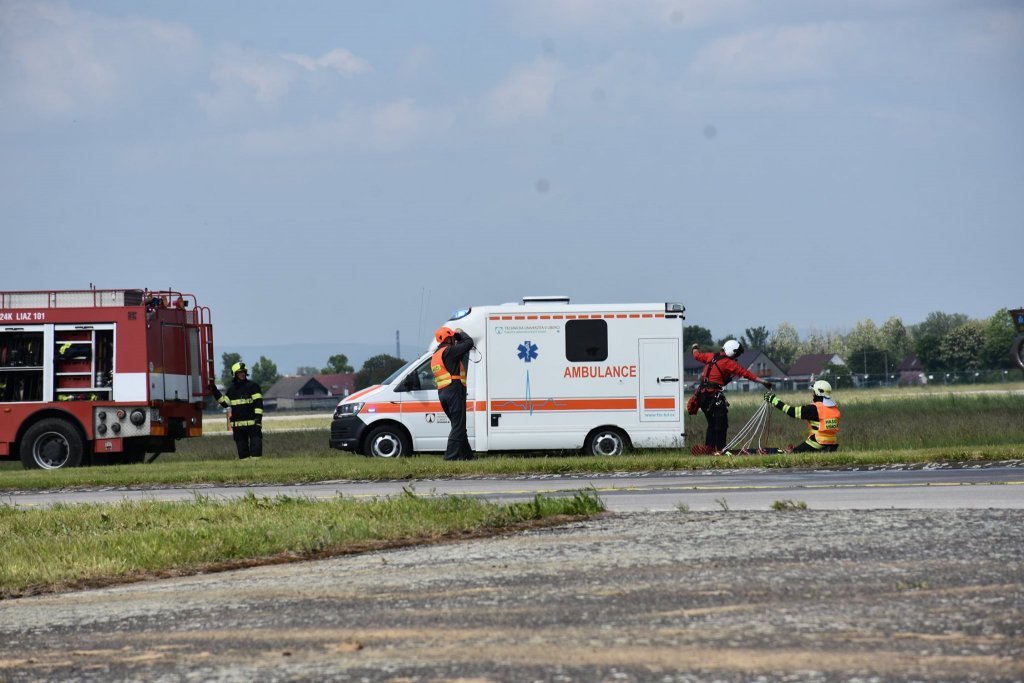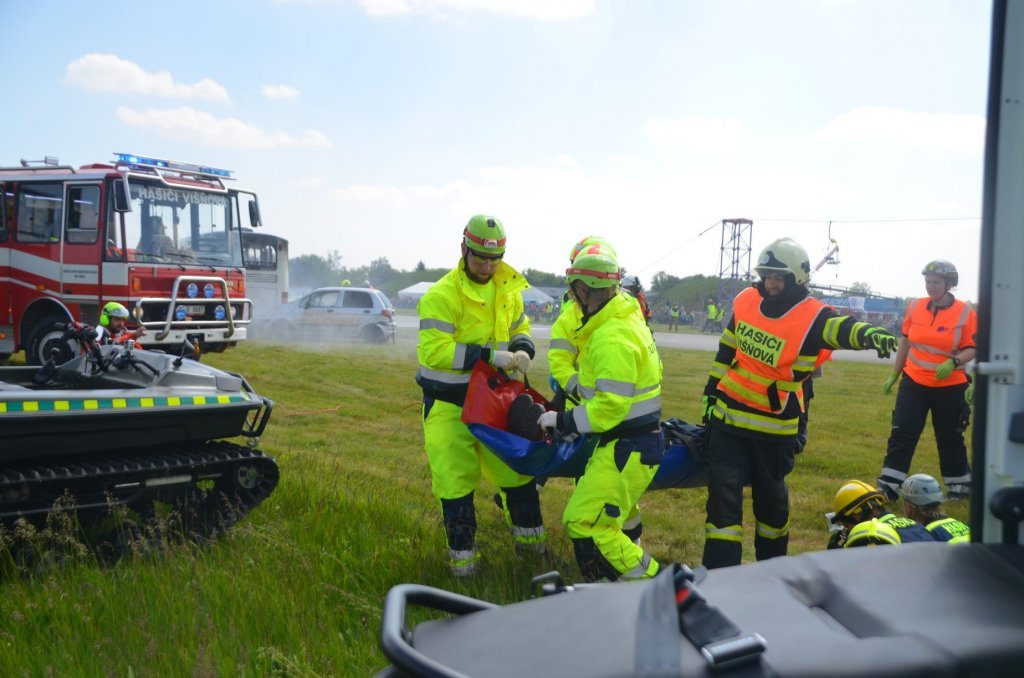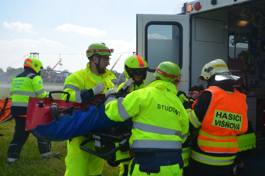 V pátek bylo prezentováno na statické ukázce sanitní vozidlo FZS. V sobotním programu, během ukázky zásahu složek IZS, byla sanitka FZS se studenty třetího ročníku oboru Zdravotnický záchranář zařazena do zásahu u hromadné dopravní nehody. V rámci této ukázky zásahu byla rozehrána situace napadení eskorty vězeňské služby výbušninou s neznámou látkou. Úkolem našich studentů bylo ošetření 3 zraněných a jejich transport z místa události. Zásah pozemních složek na simulovaném hromadném neštěstí doprovázel zásah celkem čtyř vrtulníků, z čehož dva stroje v režimu LZS a dva stroje na technický zásah.